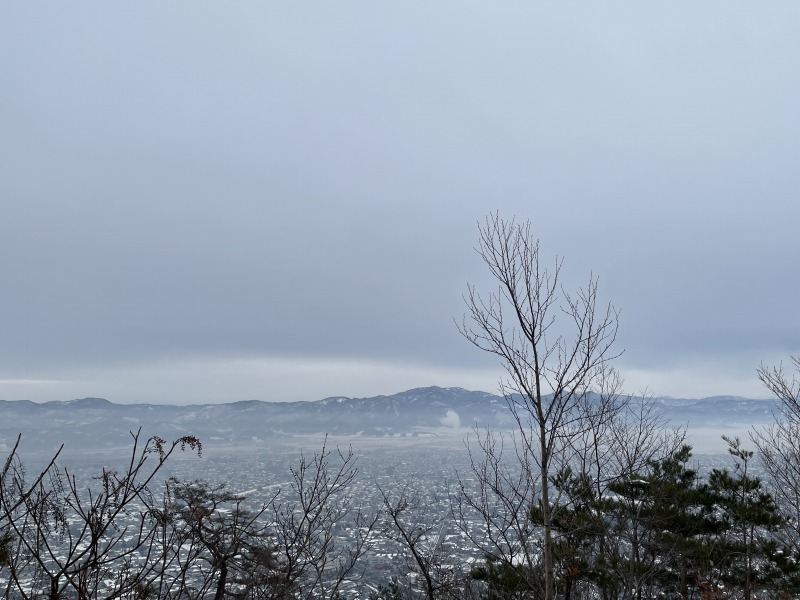 前半は雪はほとんどなく、所々霜柱が立っている程度、周りの山を眺めながらおしゃべりして