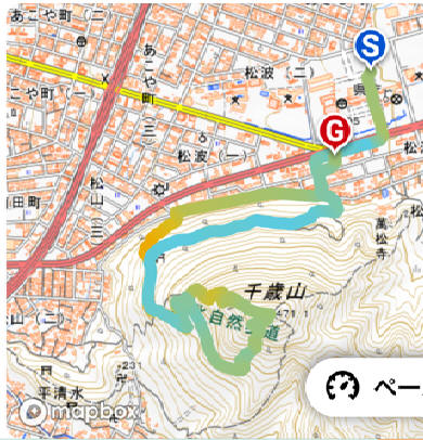 思いきや、そこは山の会、途中から稲荷神社前に戻り、今度は北側のトラバース道から赤十字