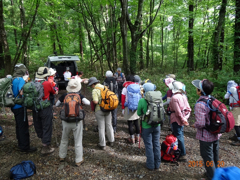 ブドウ沢登山口で、リーダーより今日の注意点を聞き登山開始。
