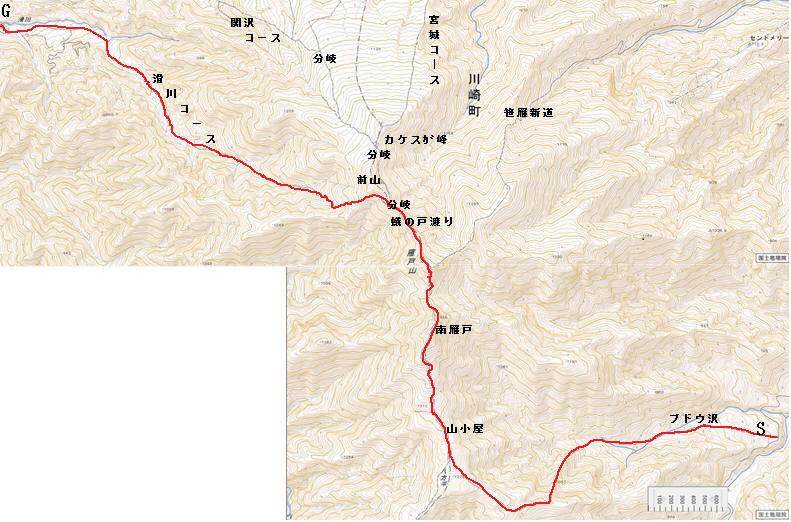県庁7:10==R286==ブドウ沢林道 ==ブドウ沢駐車場 7:55== 8:12登山開始…… 第一渡渉地点8:45…… 第二渡渉地点9:15……八方平避難小屋10:55……南雁戸山11:45 (昼食休憩)12:15 …… 北雁戸山12:55……滑川分岐13:30……新山登山口駐車場15:30==山形県庁駐車場着16:20 |