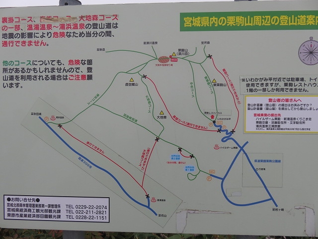 山中の登山案内板には、今回登った表掛コースは「通行できません」と表示されていた