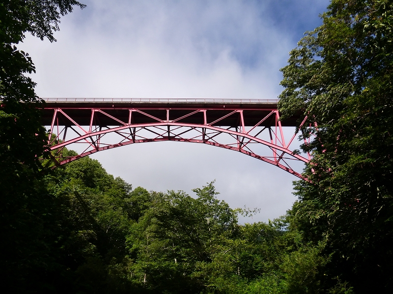 国道108号旧道(仙秋サンライン)の赤坂橋を見上げながら行きます