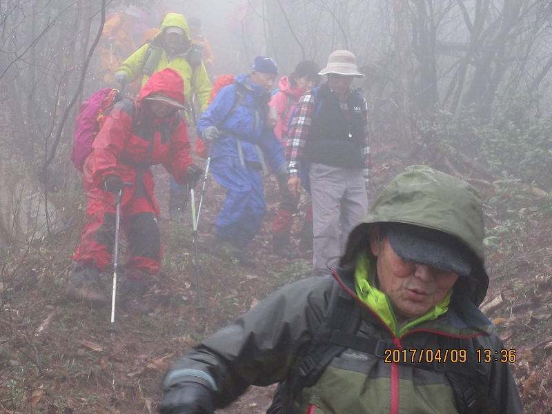 2017年度初の山行・当会の山開き。日本一の小さな山脈へということで期待が膨らむが、天気はあいにくの予報、曇天に霧も立ちこめている。登山口に着くころにはお湿り程度の雨が降り出した。関沢森林公園入口の周辺では水芭蕉が見ごろを迎えていた。 関沢登山口でリーダーの話。櫛形山脈は日本一小さい山脈で、南北約14㎞、最高峰は568m。では日本一長い山脈はどこか・・・。(さすがリーダー、ちゃんと調べてきました!)奥羽山脈が約500㎞。青森から栃木まで!とのこと。現在地点は標高200m程なので、標高差はあまりないが、コースの状況によっては、ルート変更もありうるとの話があった。新人さんの紹介のあと登山開始。 関沢登山口より大沢尾根コースへ。杉林から雑木林へ、マンサク・ユキツバキ・ショウジョウバカマなどに早春を感じながら登る。少しずつ斜度が増し、汗ばむほど。大峰山分岐を経て程なく櫛形山山頂着。濃い霧の中で展望がきかず、期待していた飯豊の山々や二王子山などを仰ぐことができない。短い休憩ののち先を急ぐ。山頂から少し下った平坦地が中世の山城「タカツムリ城址」とのことだが、余裕がなく通過したため、気づかなかった。イワウチワ・キクザキイチゲなど、可憐な花が咲いている。稜線上の快適な道のあと、市の沢分岐あたりからは結構な量の残雪がでてきた。ロープが張ってある急な下り坂が現れ、緊張しながら慎重に歩を進めるが、粘土質の土に足を取られ、ドロドロで滑りやすい道のアップダウンは結構ハード。ロープがあって助かった。雨と霧のため途中展望が開けず、我慢・忍耐の行進となる。 飯角分岐からしばらく稜線上を北進。坂井越を少し過ぎたブナ林のところで昼食休憩。雨中、傘をさしての食事となる。じっとしていると寒さを覚えるほど。 帰路は、悪天候・足元が悪いことなどから、飯角分岐まで戻って下山することとする。飯角分岐からのルートも急坂が連続し、緊張を強いられる。ロープがあっても大変なところもあった。途中休憩しながら下山。オクチョウジザクラが少し咲いていたのに癒された。 初級の山とはいえ(新潟の山のグレーディングで体力度1・難易度A)、天候その他の条件によってはハードな山行となること、低山とはいえ、侮るべからずということを思い知った山旅だった。櫛形山脈は今回のルート以外にも魅力的なところがいっぱいあり、山の自然のみならず、史跡としてもおもしろそうだ。条件が良ければ飯豊の山々ばかりではなく、日本海・佐渡が島などの展望も期待できそうである。大峰山一帯には様々な桜が自生し、「大峰山橡(トチ)平(ダイラ)サクラ樹林」は国の天然記念物に指定されているとか。山開きは4月29日、そのころには桜も咲くのだろうか。ぜひ再訪したいものである。 |