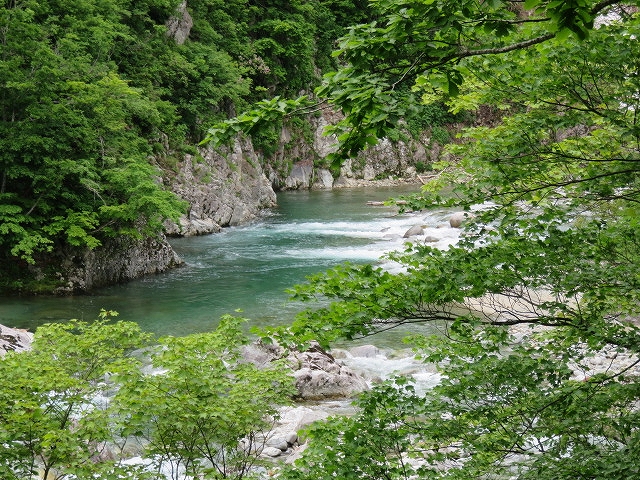 | 6月11日 | 県庁発 6:10==白い森小国7:40==8:15天狗平8:30~~温身平 8:55~~うまい水 9:50~~雪渓に降りる 10:20~~ 11:10石転び沢出合 昼食 11:55~~雪渓の終り 12:30~~うまい水12:45~~堰堤大滝13:25~~温身平 けもの歩道13:40~~14:35天狗平14:50==白い森小国15:40==県庁着 17:20 |