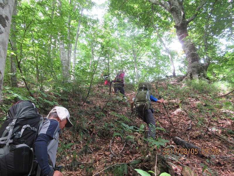 ザックをデポした熊越付近