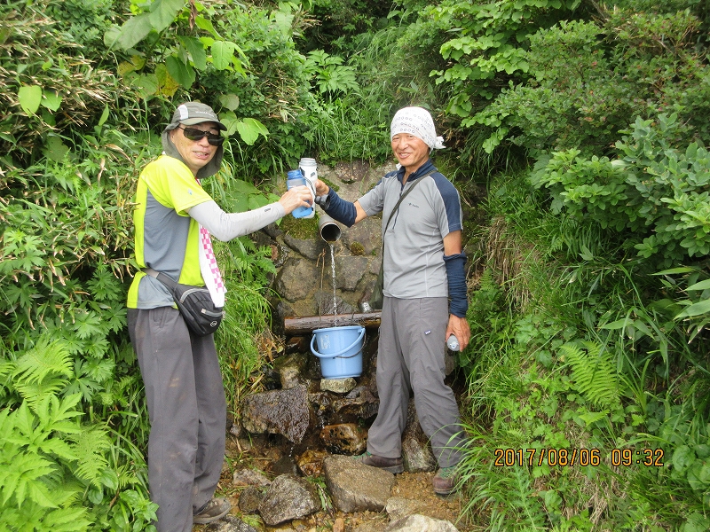 鳥原小屋に荷物を収納~庭で美味しい水飲んでます