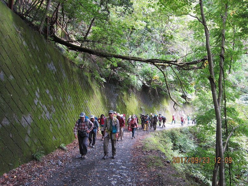 | (土) | 登山開始 H560m(11:40) (後山川林道を行く)…… 脱ぎタイム(12:00~12:05) …… 片倉橋ゲート(12:15) ……新片倉橋(12:29) …… 塩沢橋休憩(12:50~12:55) ……蔦久保橋(13:08) ……休憩(13;25~13:30) …… 休憩(14:00~14:05 ) …… 林道終点 東京水道水源地碑(14:10)…… 休憩(14:24~14:30)……テント場 H1090m(14:42) …… 三条の湯着 H1103m(14:45) |