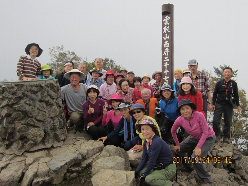 | 2017m無事登頂。雲取山は明治16年の「全國三角測量」により設置された「原三角測點」と、国土地理院の一等三角点があり、測量の歴史的にも貴重な場所だそうである。富士山の絶景を期待していたが、ここでも残念。記念撮影をし、それぞれの思いを胸に山頂を後にした。雲取山荘へはやや急な下り。雲取山荘は通年営業の山小屋。小屋の前には水場があり、おいしい水をいただいてゆったり休みたいところだったが、少々遅れが出はじめ、短めの休憩後、先を急いだ。男坂・女坂の分岐。やはりここは女坂でしょ!薄日が差しはじめ、木漏れ日がうれしい。大ダワから白岩山悪場あり 足元に十分注意との道標あり。途中、探し求めていたシラヒゲソウ発見。花弁が髭のように裂けレースのよう。カラスウリの花を小さくしたような可憐な花、神の御業かと思う不思議な姿であった。美しい原生林を進み、芋の木ドッケで昼食休憩。ここから白岩山はすぐ。ちょっと下ったところに白岩小屋があるが、荒廃しており、緊急時以外使用不可。前白岩山の肩からお清平への道は足場の悪い難所で、慎重に下る。小休止の後、霧藻ケ峰への登り返し、休憩所あり。テラスからは北西の展望が素晴らしいとのことだが、ここでも雲にさえぎられた。山頂にあった一年間限定の記念碑「雲取山西暦二千十七年記念」の存続のための署名を求められた。直下の岸壁には秩父の宮のレリーフがあった。霧藻ケ峰の名は秩父の宮が登山された際、命名された由。それを記念して建設されたとのこと。再びガスが濃くなってきて、「ホント、霧藻ケ峰だわ!」とのつぶやき。何やら薄暗くなってきて、夕暮れ時のよう。地蔵峠を経て、ひたすら下る。杉や檜の美林の森が広がる。鹿の食害を防ぐためか、幹にネットが巻かれている。妙法ケ岳分岐の奥宮の鳥居を過ぎ、しばらくして鳥居をくぐれば三峰ビジターセンター、下山完了。予定時間よりは若干遅れたものの、全員無事、元気にロングコースを踏破できたことがなによりであった。 |
