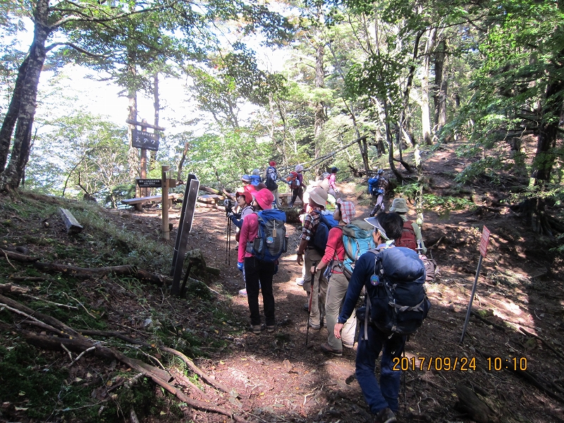 | 9月24日 | 起床(4:30) 朝食(4:50) 出発(5:15)…… 脱ぎタイム(5:29~5:35)…… ヘッドランプしまう(5:45) …… 休憩(5:50~6:05) …… 休憩(6:52~6:58) ……三条ダルミ(8:03~8:12)……雲取山山頂避難小屋(8:56) ……雲取山山頂着 H2017m(9:00~9:15) …… 雲取山荘 休憩(9:38~9:45) …… 男坂・女坂分岐 女坂へ (9:52) …… 大ダワ(10:07) …… 芋ノ木ドッケ 昼食休憩(11:05~11:40) …… 白岩山H1921m(11:44) ……白岩小屋(12:00) …… 白岩山 |