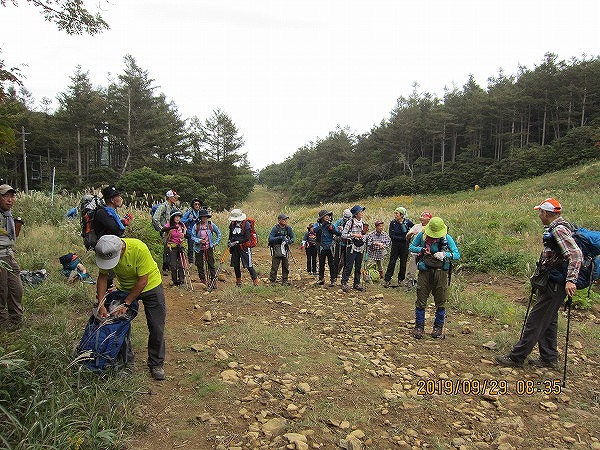 4934 奥岳登山口から出発、スキー場ので脱ぎタイム。