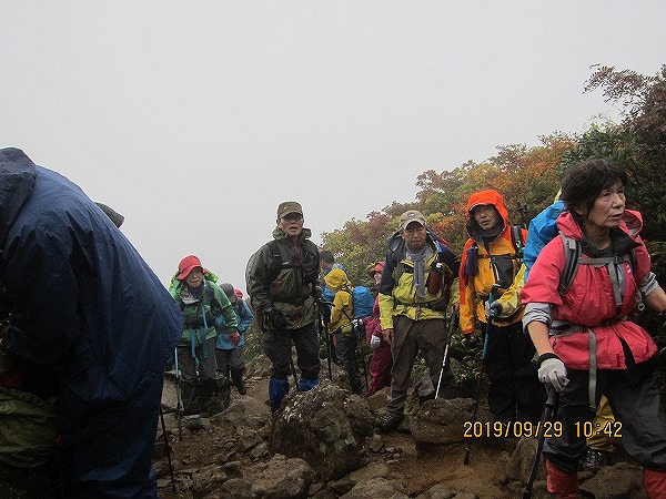 | 今日は朝から小雨 おそらく安達太良山はもっと 雨が激しくなるのではないかと心配です。奥岳登山口の駐車場から あだたら高原スキー場を 登って行く、アキノキリンソウ エゾオヤマリンドウ等秋の花が咲いていたが 暫くすると 小雨が降り始め 登山最後まで 降り続きます。薬師岳展望台でリフト組と合流して 山頂を目指す。風の強い山頂で写真を急いで取り 下山を開始 昼食のため くろがね小屋を目指す。くろがね小屋からは湯川渓谷となり 足元注意や落石注意の看板や 丸太の橋やクサリ等 小雨の中 ひやひやしながら 長い下りとなりました。もう花は余り有りませんでしたが、紅葉が少し始まっていて綺麗でした。 |