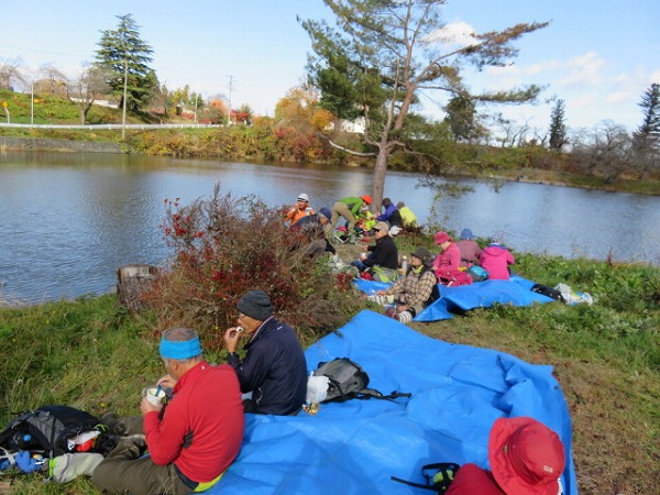 鏡沼のほとりで昼食休憩 出発11:30 == 羽前小松駅(トイレ休憩)11:36~11:45 == 秋葉山登山口 12:17