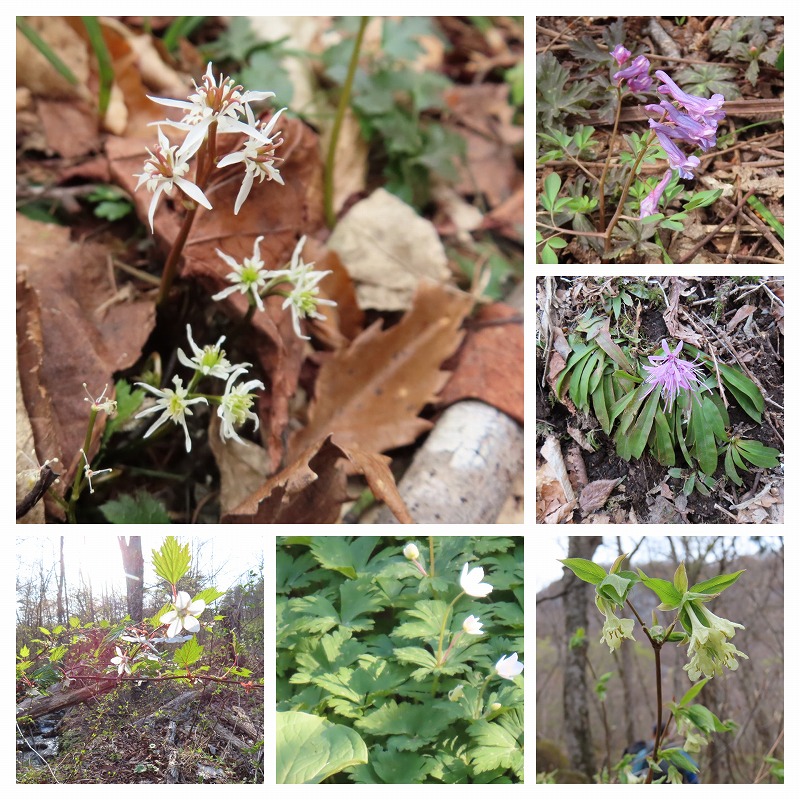 ヤマエンゴサク、ショウジョウバカマ、アラゲヒョウタンボク、ニリンソウ、