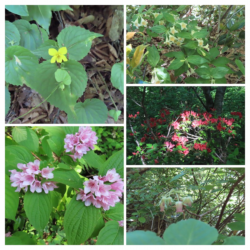花②: 大 オオバキスミレ、タニウツギ、小ウゴツクバネウツギ、