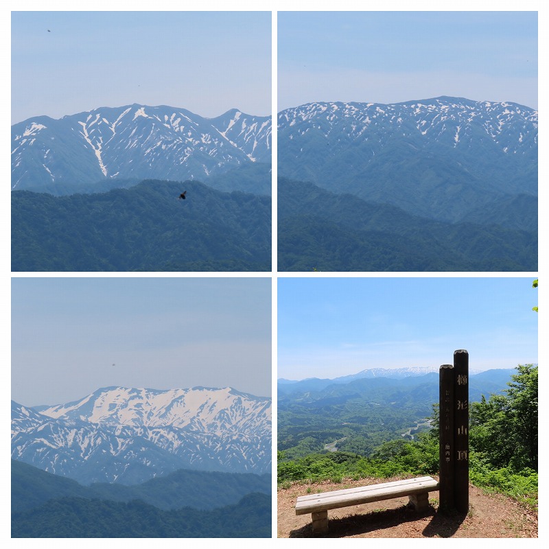 | 連峰が正面に見える大パノラマ。こちらから見る飯豊連峰はだいぶ雪も融けているようだ。景色を眺め | |||||||||