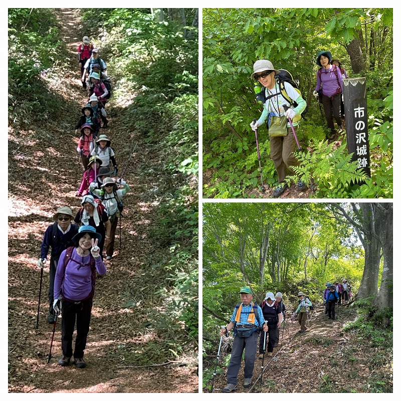 | 結構あってだんだん汗をかく。要害山(市の沢城跡)も眺望はなく、その後は急坂となり、慎重に下って | |||||||||