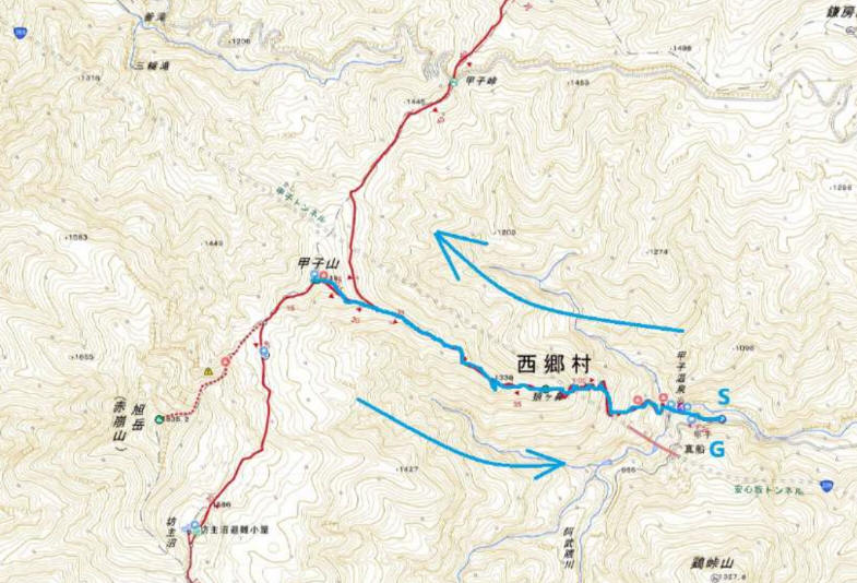 甲子温泉を通ってスタートです。