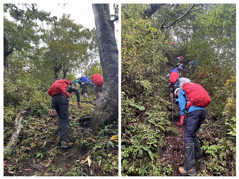 ロープなどの補助具もなくて、とにかく急です。